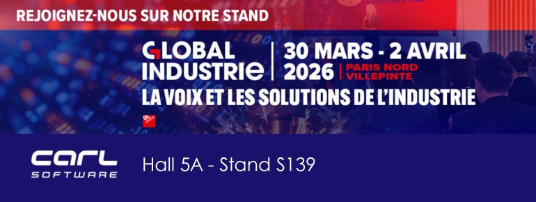 Du 30 mars au 2 avril 2026, CARL Software, leader français de la GMAO et de l’EAM, vous donne rendez-vous au Salon Global Industrie 2026 à Paris Villepinte. Retrouvez nos équipes ainsi que...